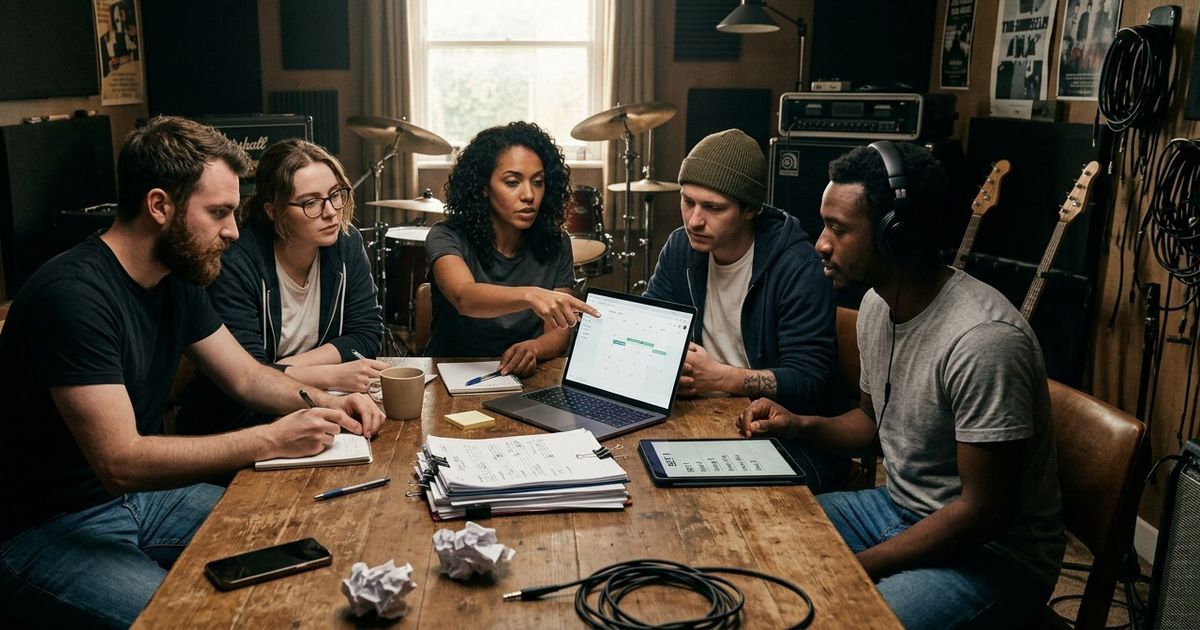 Ebenso typisch: Eine Band versucht, alles informell zu halten, obwohl sie längst auf einem Niveau arbeitet, auf dem saubere Prozesse nötig wären. Genau an diesem Punkt wird aus lockerem Koordinieren plötzlich ein echtes Thema für Musikmanagement.
