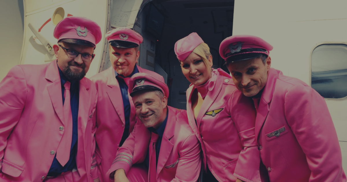 Hi Patrick: the name Pink Party Plane seems to be your program. The very first thing that stands out is your colorful outfit, which somehow reminds of the dresscode of pilots and flight attendants, the whole thing continues on your website – how did it come about? Yes exactly, we are dressed like an airplane crew, but in pink, which of course immediately catches the eye at events. Also on our website it runs through like a red thread, whereby we play live not only in pink. Often it is also required to perform in fancy evening wear or sometimes even casual. In addition, we also offer ourselves as an unplugged formation, so that we can also play at quieter events.