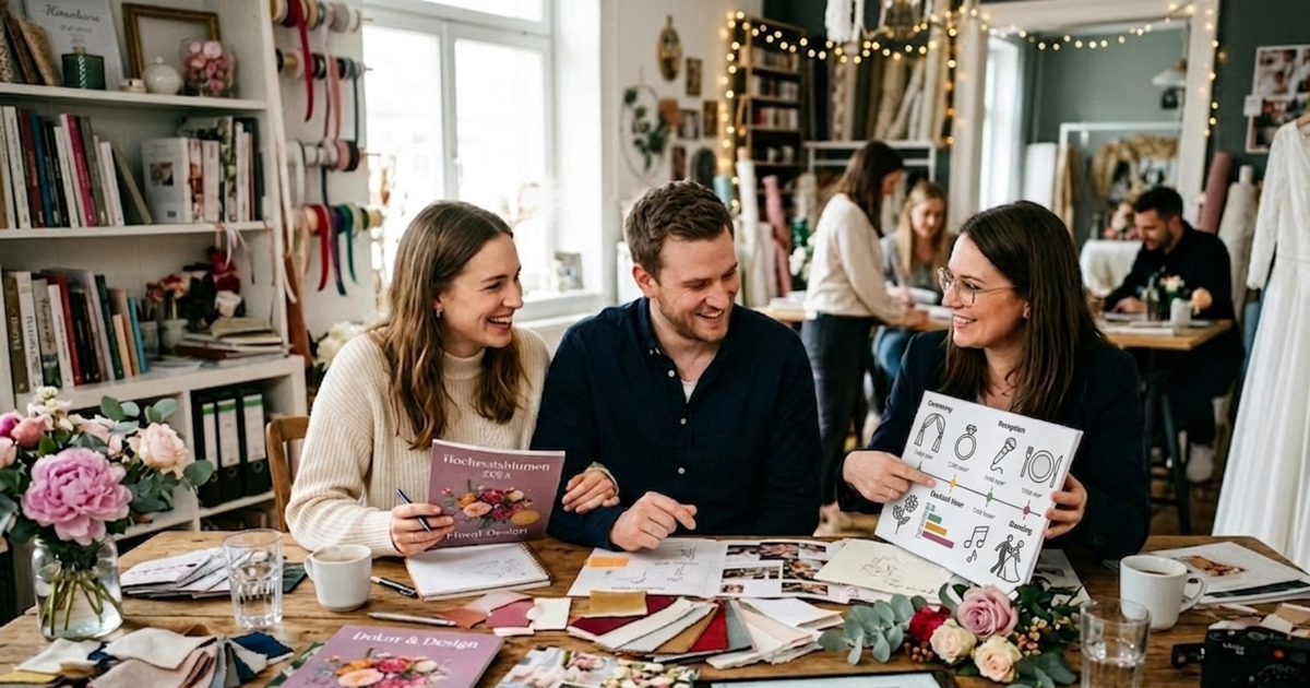 Wie gehe ich bei der Planung vor? Wie kann ich mein Programm gestalten? Wie kann ich Wartezeiten überbrücken? Wir haben die Antworten! Für den Gesamtüberblick lohnt sich außerdem unser Artikel zum Hochzeit planen. In diesem Blogartikel erfahren Sie, wie Sie ein strukturiertes Hochzeitsprogramm planen, worauf zu achten ist und welche Programmpunkte Sie einbauen können, um Ihren besonderen Tag zusammen mit Ihren Gästen zu feiern und unvergessliche Erinnerungen zu schaffen.